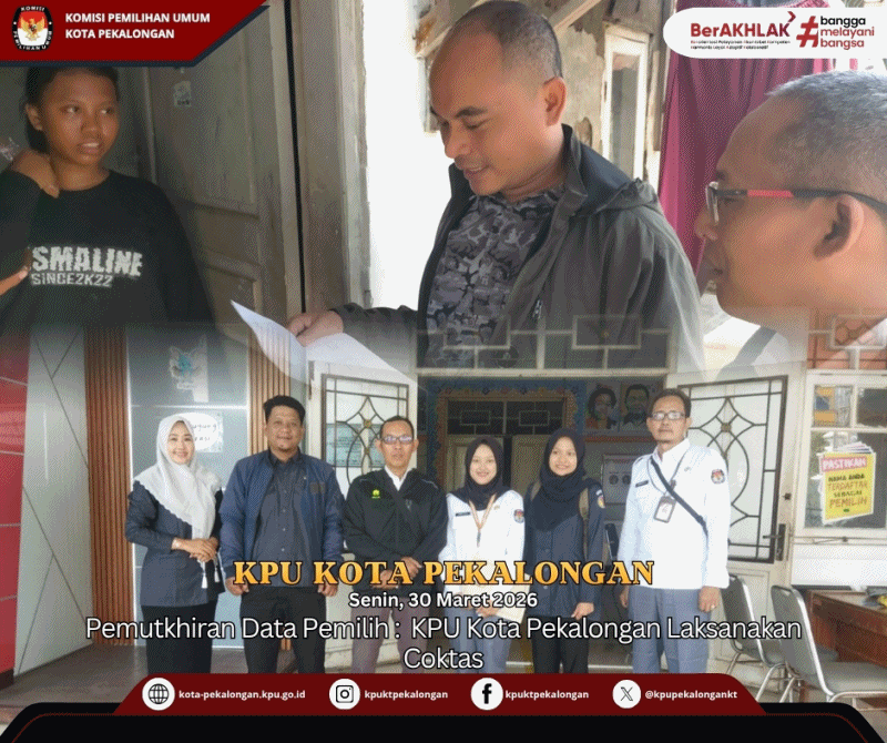 KPU Kota Pekalongan melaksanakan kegiatan Pencocokan Terbatas (Coktas) Triwulan I dalam rangka Pemutakhiran Data Pemilih Berkelanjutan (PDPB). Langkah ini diambil untuk memastikan data pemilih di Kota Pekalongan tetap mutakhir, valid, dan terlindungi hak pilihnya.